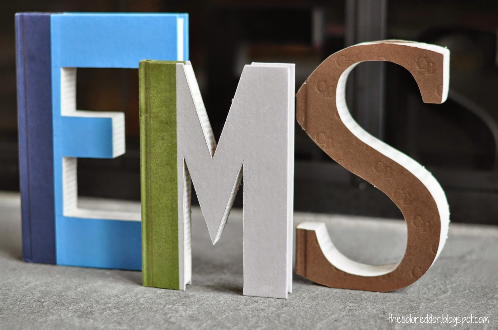 I love all the different colors! My daughter requested a pink "E" for her name and I had to search high and low for a pink book. It was fun hunting for just the right colors behind those jackets.